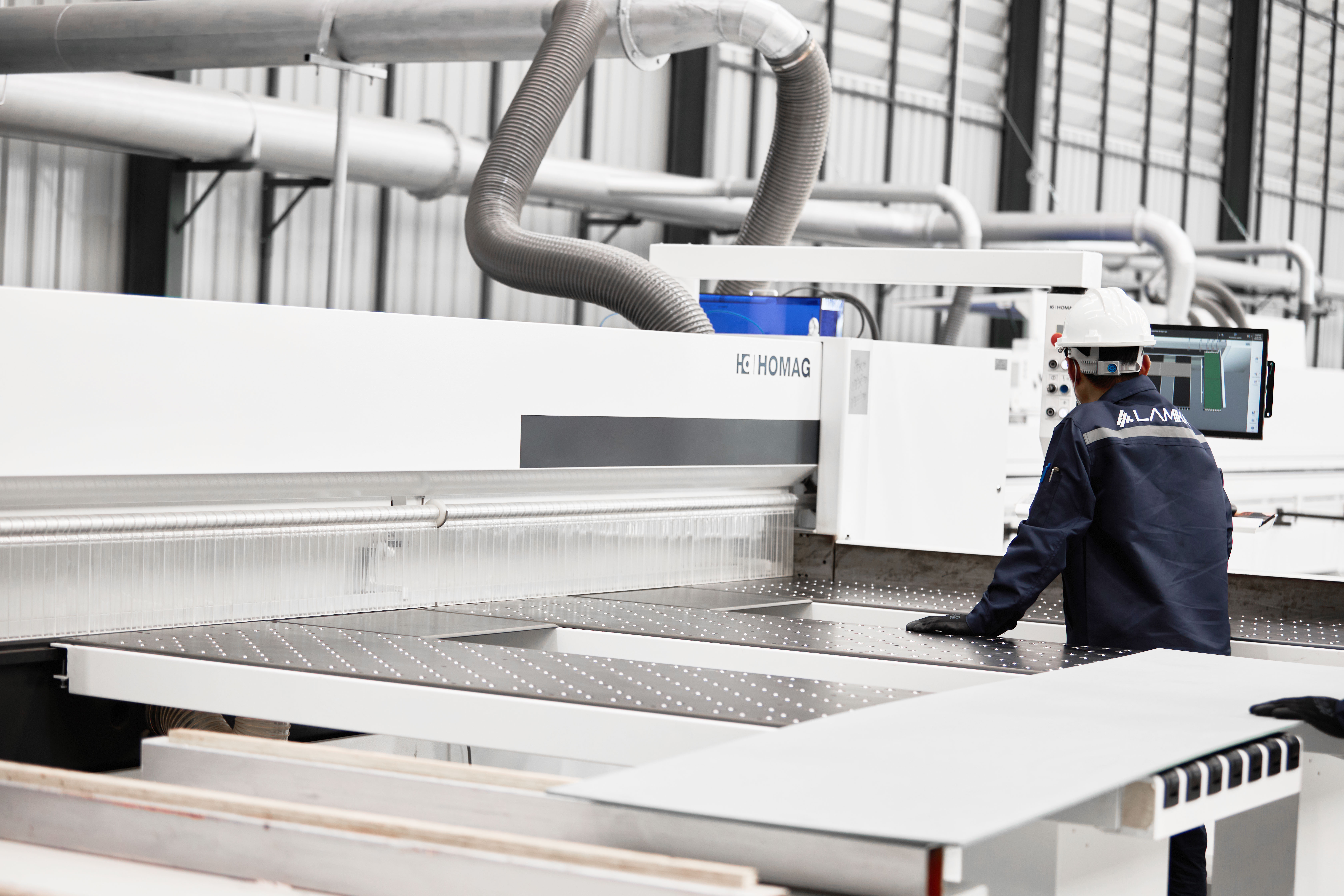 ใช้ระบบการผลิตอัตโนมัติเต็มรูปแบบและเครื่องจักรสุดล้ำจากยุโรป นำโดย HOMAG เพื่อมอบความแม่นยำสูงสุดและประสิทธิภาพการผลิตสูง ทำให้เราสามารถรองรับการปรับแต่งชิ้นงานจำนวนมาก ได้อย่างรวดเร็ว